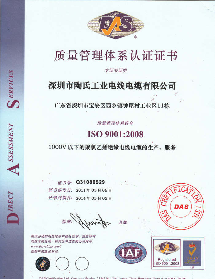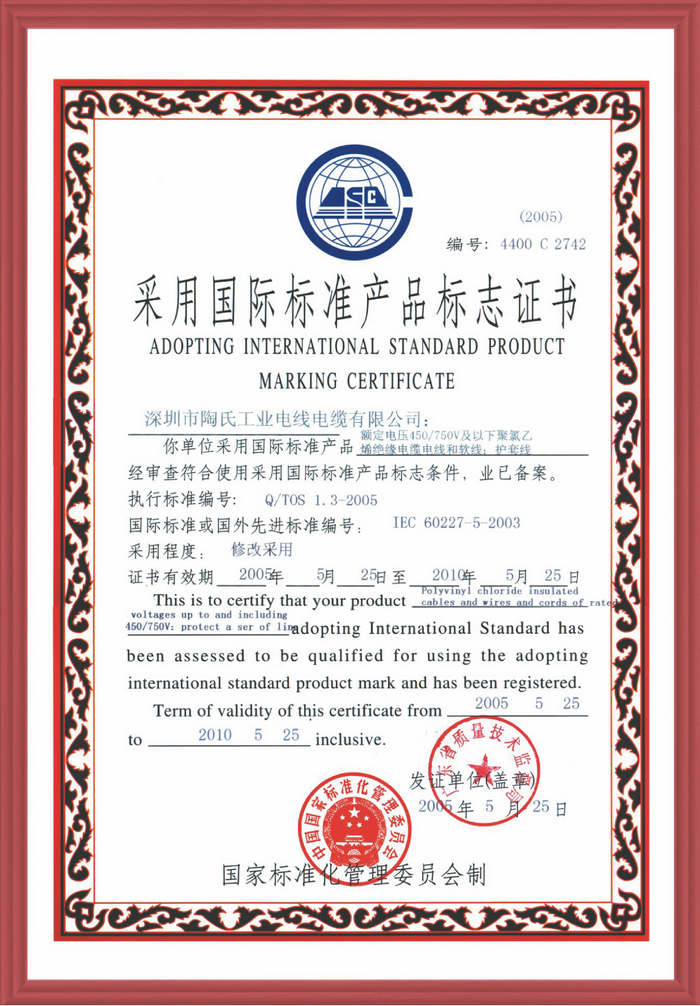 陶氏工业电线电缆有限公司座落于我国美丽的海滨城市——深圳,地处东西交通之要塞的宝安黄田,国际机场、福永码头近在咫尺,南依107国道、北毗广深高速,交通便捷,地理位置得天独厚。公司是集科研、制造、营销、服务于一体的大型现代化线缆生产企业,与香港陶氏兄弟(国际)有限公司联合推出“陶氏兄弟”与“友人”两大品牌安防通信系列产品。现公司拥有世界先进水平的押出机系列、大型线缆机以及全套检测设备,严格执行ISO9001国际质量认证体系与“3C”认证的标准,推行“7S”管理,以强大的生产能力和卓越的产品品质,以及极高的性价比竞争优势来满足不同客户的需求,主要产品有AV、AVR、RV、AVRB、AVRS、RVS、RVB、BV、BVV、BVR、AVVR、RVV、RVVP屏蔽线,双绞屏蔽线,SYV、SYWV、RG系列75欧姆视频及射频同轴电缆,HBV电话线、音响线、通信电缆、电梯线,及卡拉OK工程信号线,UTP、FTP、S-UTP各类网络线、VGA、电脑周边连接线缆及各类多媒体通信电缆等。适用于高层楼宇对讲系统,监控、防盗、消防及自动读表工程,闭路监控及有线电视工程,计算机网络及周边连接,广播、音响工程,安装照明用线等````` 各种规格应有尽有。公司成立至今,参与了许多国内外大型工程。销售网络遍布全国,各类产品行销欧美及亚洲多个国家与地区。公司拥有一批高素质,年轻化、专业化的管理、技术人才以及兢兢业业的营销队伍。尊重知识、重视人才,遵循“任人唯贤、唯才是举”用人机制,以人为本,陶氏将继续发挥人才、技术和设备优势,精益求精、不断提高产品品质,研发出更高水准系列线缆产品进军国际市场,树立民族线缆品牌.......